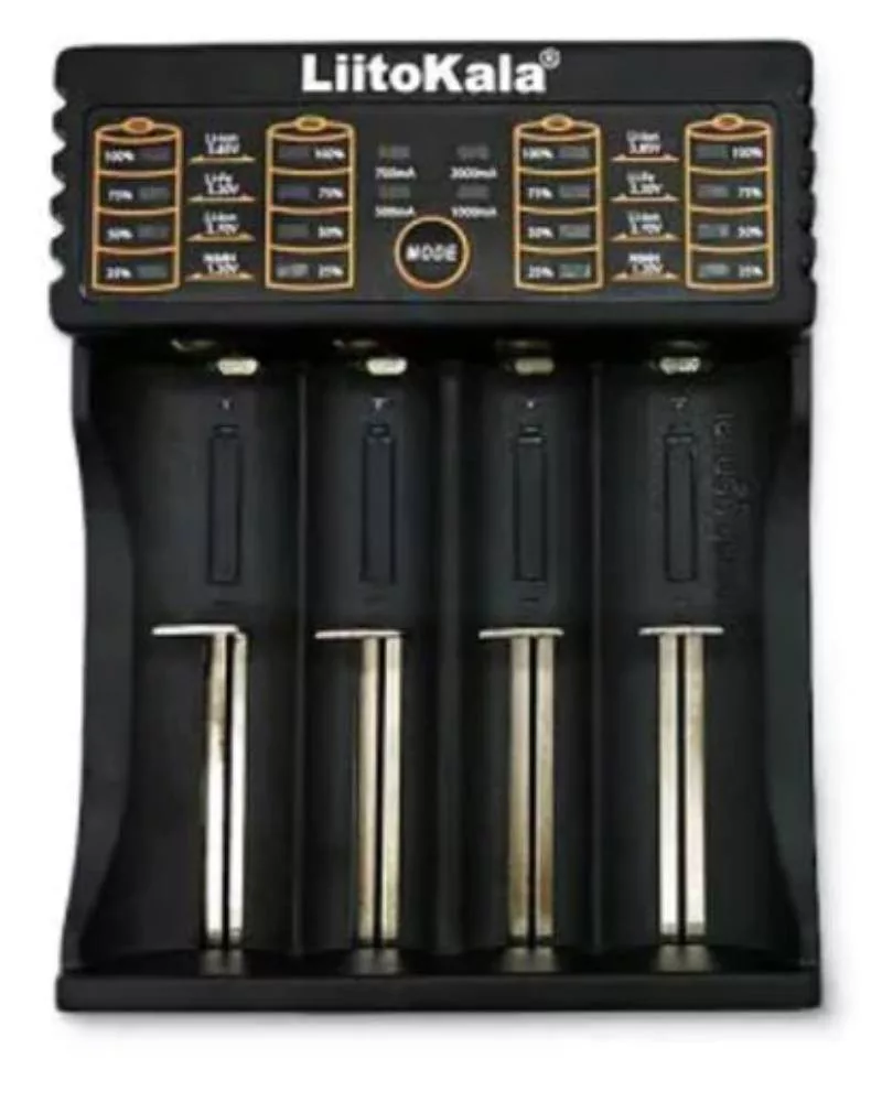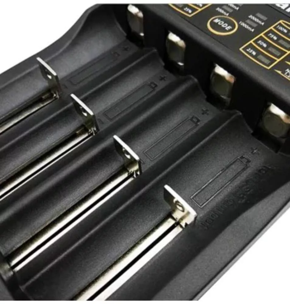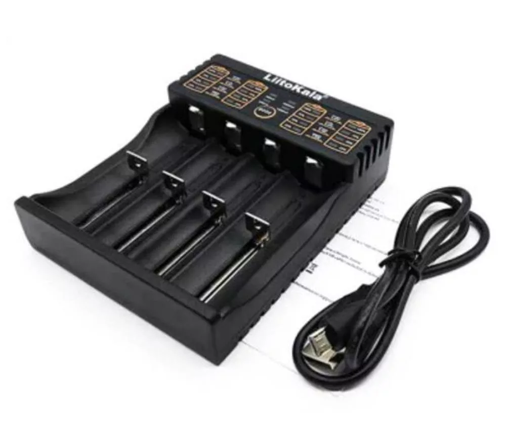 Kwaliteitsoplader geschikt voor parallel opladen van 4 batterijen.