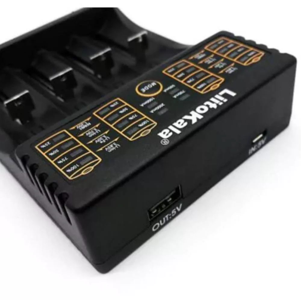 • Werkt ook als powerbank (via de batterij in het 4e slot) voor het opladen van telefoons of andere apparaten.