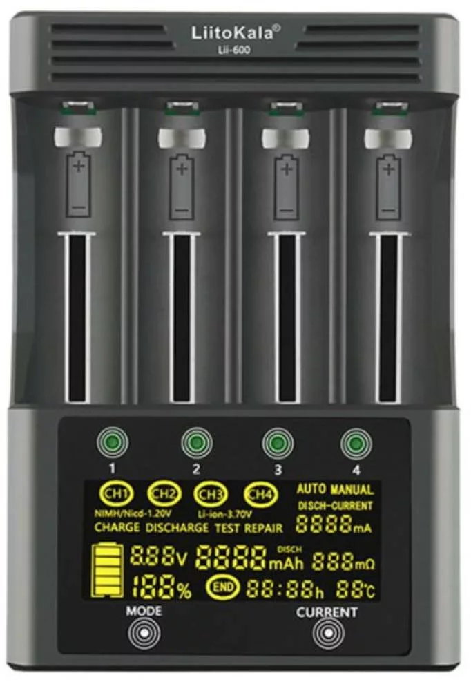 Liitokala Lii-600 LCD batterij oplader, 12A laadstroom