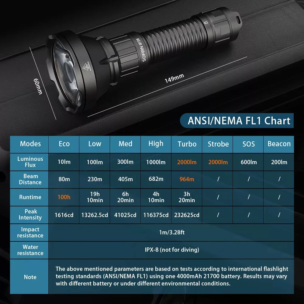 Sofirn SF26 zaklamp met SFT40 LED, 2000 lumen, bereik 963 m