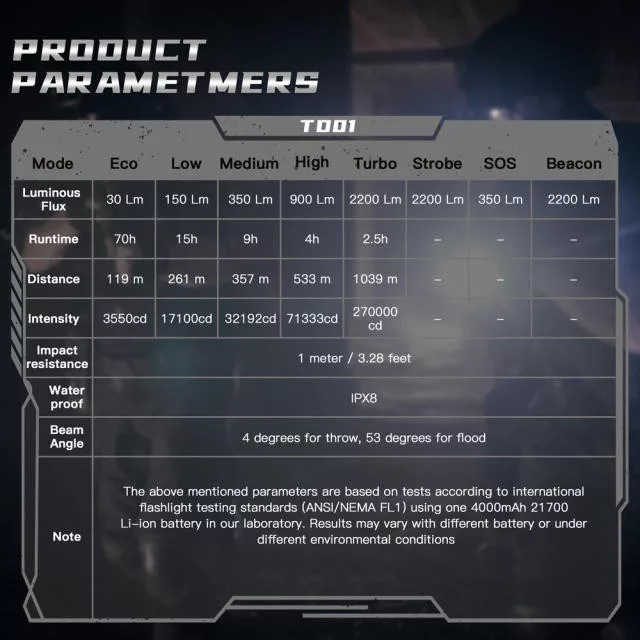 • Zaklamplichaam: luchtvaartkwaliteit 6061 aluminiumlegering, CNC-bewerkt, hard geanodiseerd, geproduceerd volgens militaire specificatie type III, slijtvast oppervlak voor een solide constructie, schokbestendige geometrie en verbeterde warmteafvoer