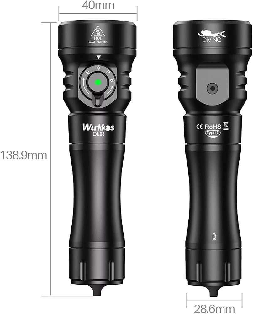 Wurkkos DL08 3600 lm oplaadbare duiklamp – magnetische draaiknop